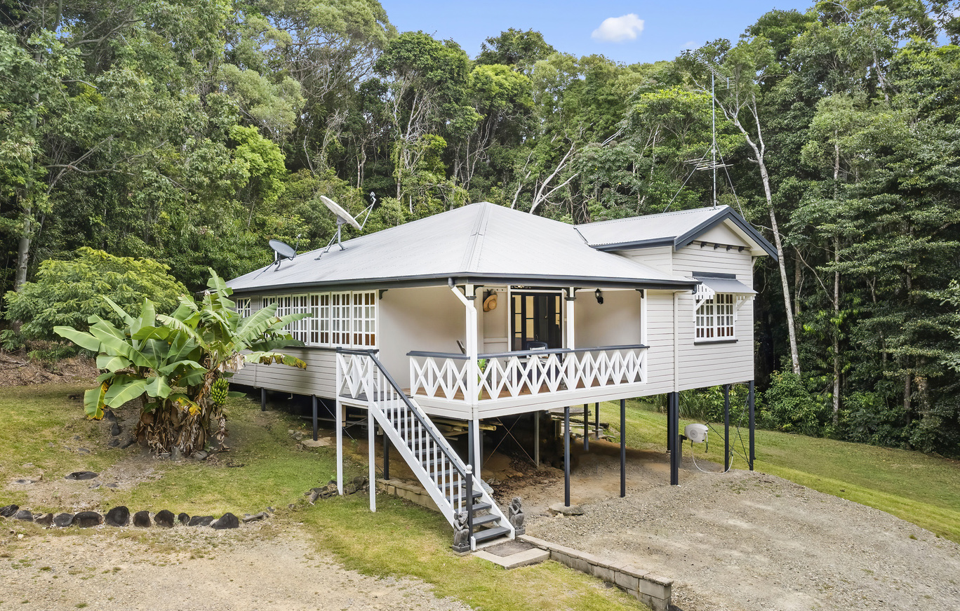 Ensconced within Lush rain forest, a small patch of land has been selectively crafted to accommodate a stylish high-set Queenslander.