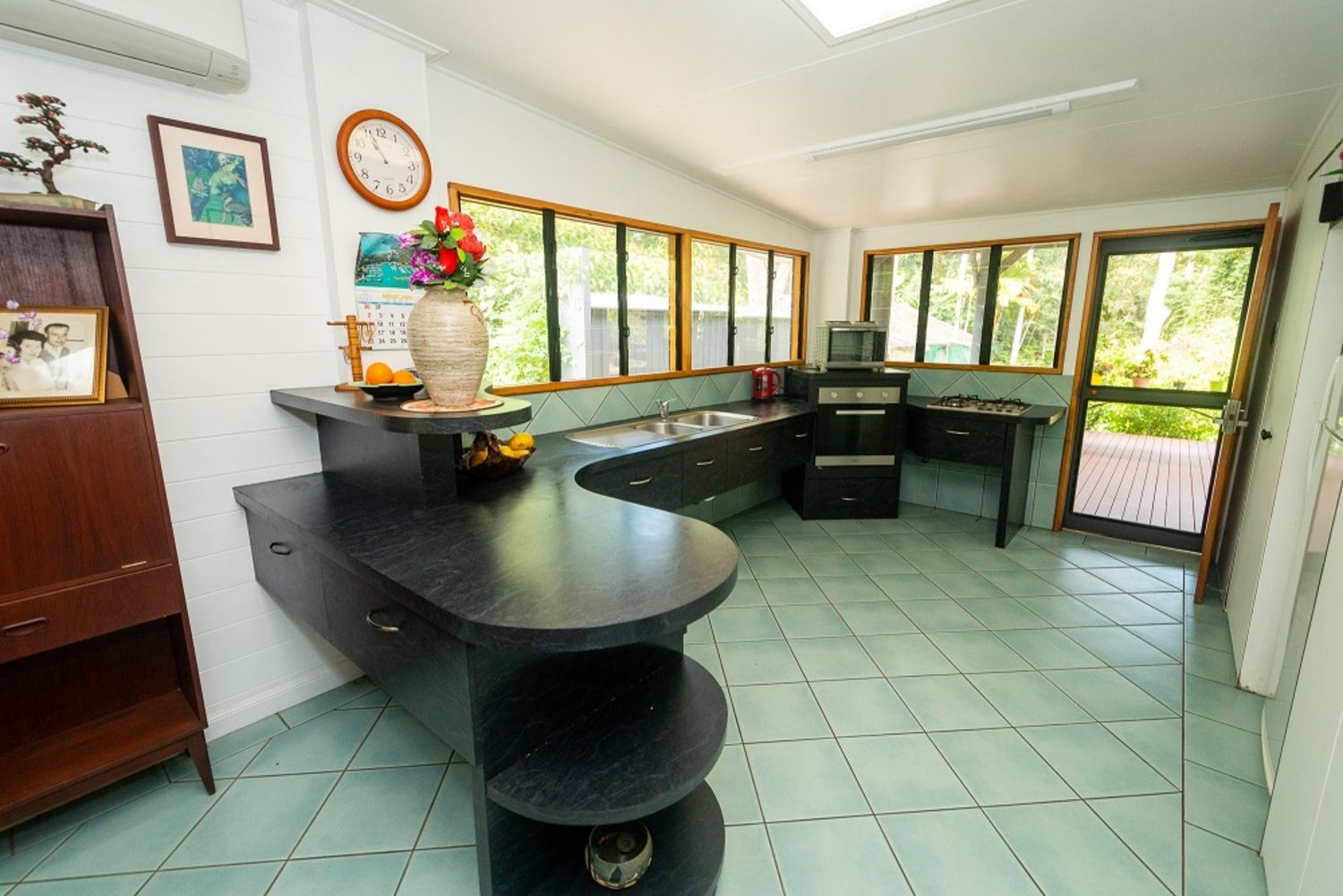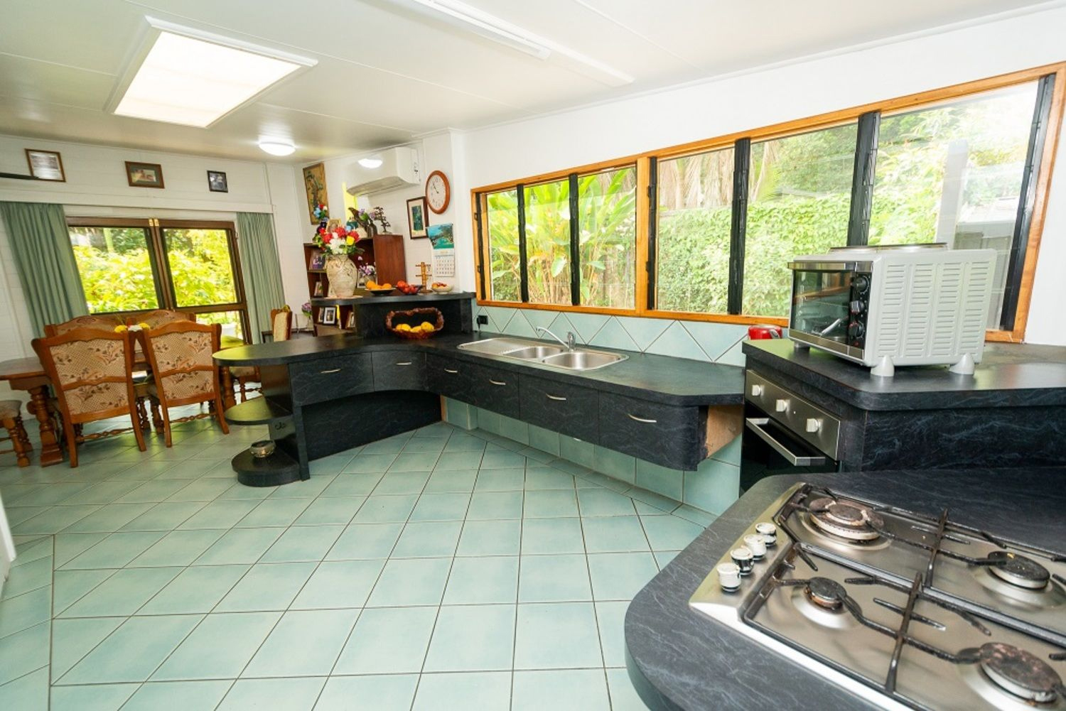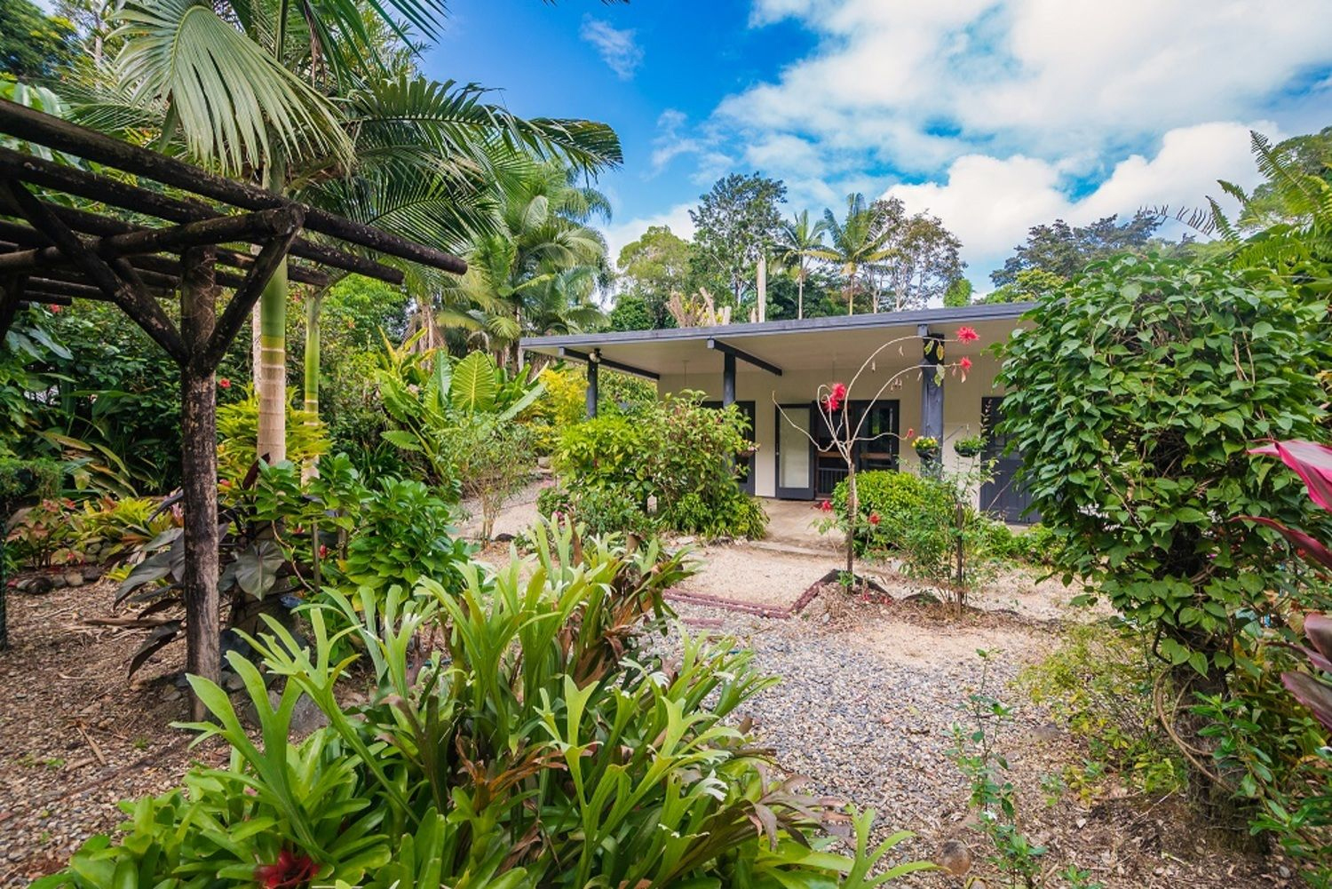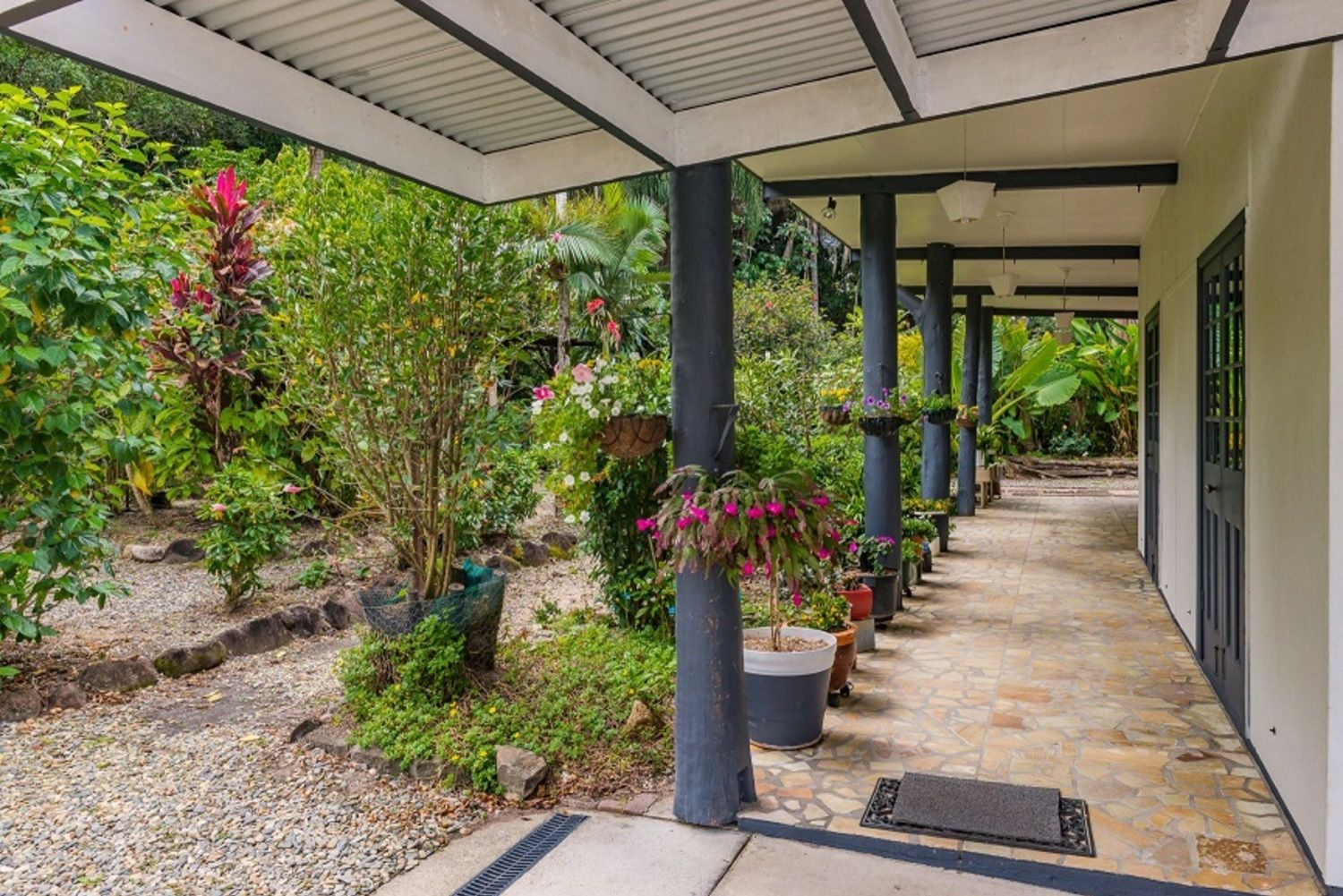 Set on a long lot that features the house at front & a rich profusion of rainforest at the back.
